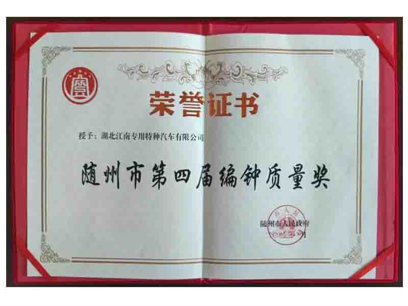 湖北江南專用特種汽車有限公司經(jīng)過申報(bào)推薦、資格審查、資料評(píng)審、現(xiàn)場(chǎng)評(píng)審、問詢答辯、綜合評(píng)價(jià)、審議公示等程序,被授予“隨州市第四屆編鐘質(zhì)量獎(jiǎng)”。